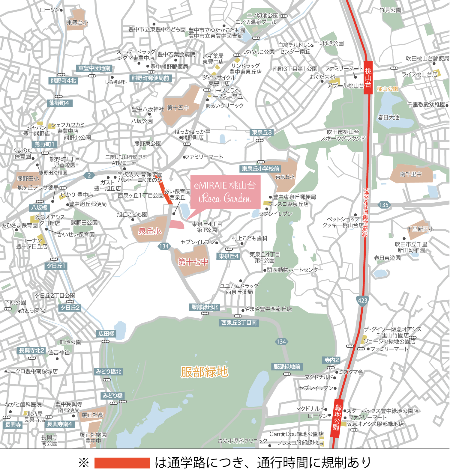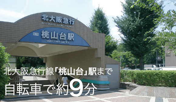 「桃山台」駅・「緑地公園」駅からそれぞれ自転車約9分。